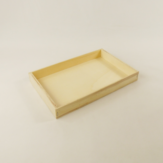 Plateau 320x250x30, en contreplaqué de peuplier, faible hauteur. Possibilité de compléter le plateau avec un couvercle carton et un fond carton noir. Accessoires vendus séparément. Idéal pour les présentation fromagères, traiteurs,