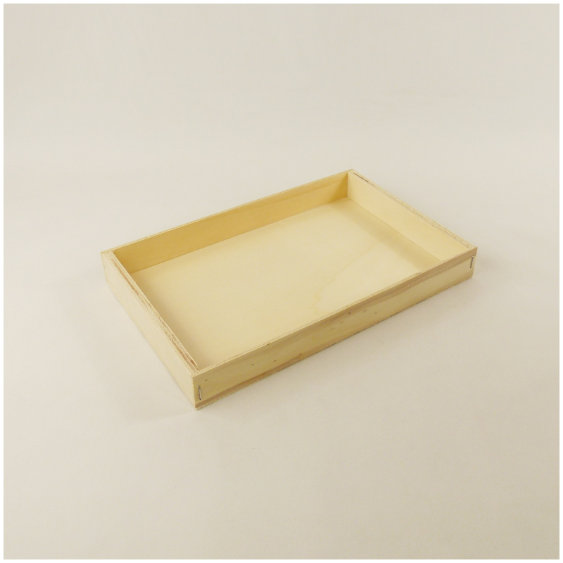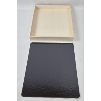Plateau 380x273x30, en contreplaqué de peuplier, faible hauteur. Possibilité de compléter le plateau avec un couvercle carton et un fond carton noir. Accessoires vendus séparément. Idéal pour les présentation fromagères, traiteurs,